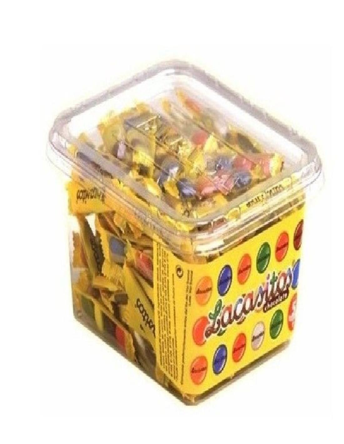 Lacasitos vienen presentados en un cajita transparente de plastico con 200 sobrecitos.