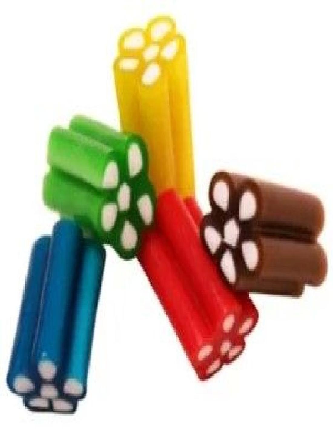 Jarabe de glucosa-fructosa, azúcar, agua, harina de trigo (gluten), almidón de maíz, dextrosa, acidulantes: E270, E296, E330, grasa de palma, gelatina, correctores de acidez E331, E325, aromas, sal, emulgente: E471, conservador: E202, colorantes: E100, E120, E133, E150d. Agentes de recubrimiento: E901, E903, E904.