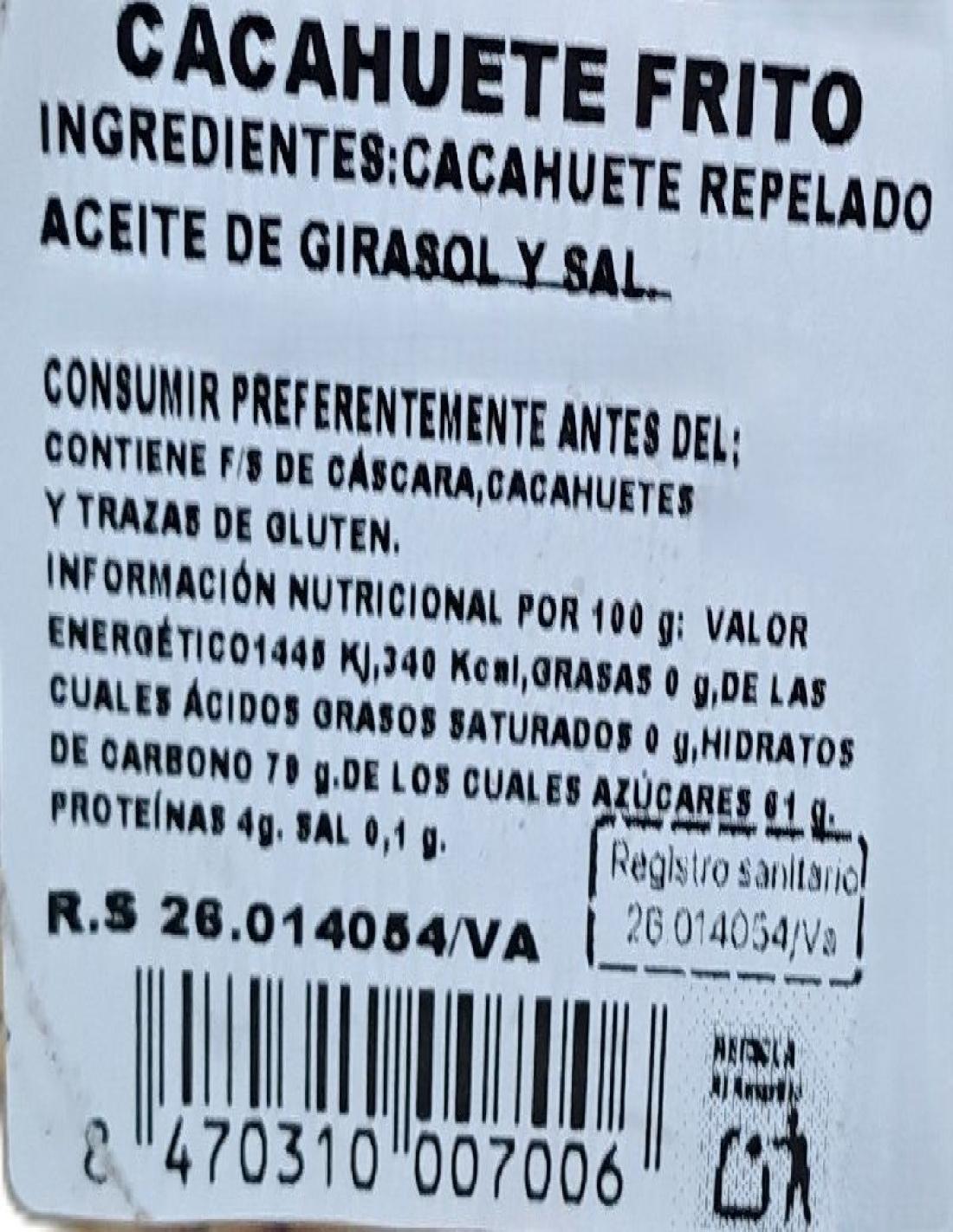VALOR ENERGÉTICO 340 kcal / 1445 kJ GRASAS 0 g de las cuáles saturadas 0 g HIDRATOS DE CARBONO 79 g de los cuáles azúcares 61 g PROTEÍNAS 4 g SAL 0,1 g.