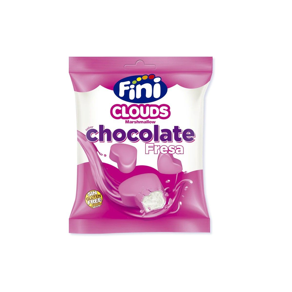 Clouds Chocolate Fresa Fini, nubes con forma de corazón, cubiertas de chocolate con sabor a fresa. Perfectas para regalar en San Valentín, decorar mesas dulces o sorprender en cumpleaños.