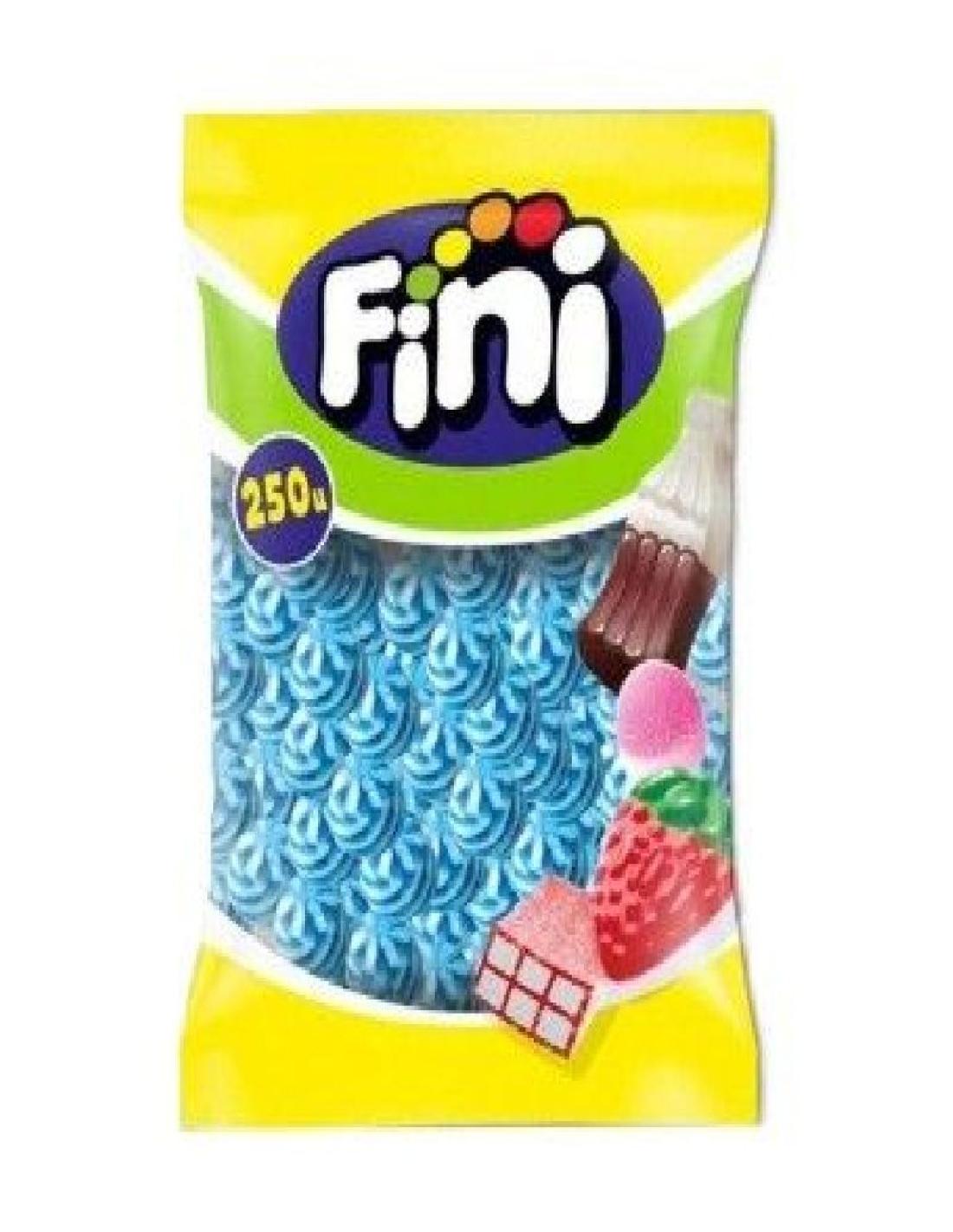 Caramelos de goma de la marca Fini. Con sabor a Frambuesa. En tonos blancos y azules, es una golosina muy colorida que dará un toque especial a cualquier Candy Bar o será perfecta para elaborar brochetas. Presentado en una bolsa con 250 unidades.