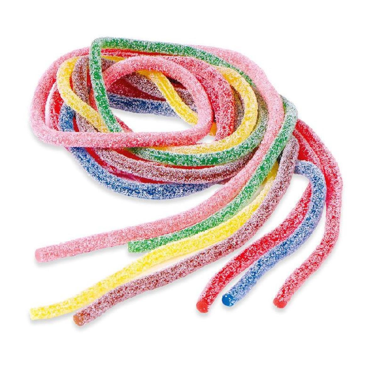 Geles dulces con apariencia de spaguetti. Con una capa ácida que tanto gusta. Con sabores y colores surtidos.
