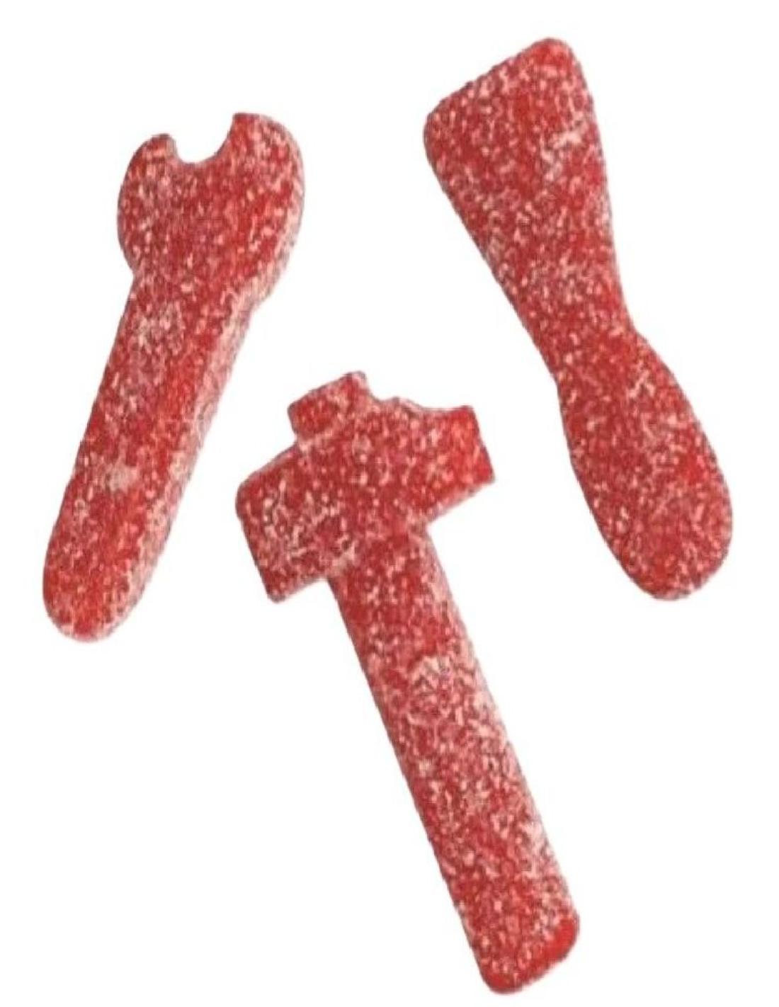Divertidas figuras de llaves inglesas, martillos y espátulas que convierten cada bocado en una experiencia lúdica y deliciosa. Su textura suave y esponjosa se combina con un sabor a fresa intenso que despierta el paladar, acompañado de un TOQUE ÁCIDO que los hace irresistibles para los amantes de las golosinas con carácter.