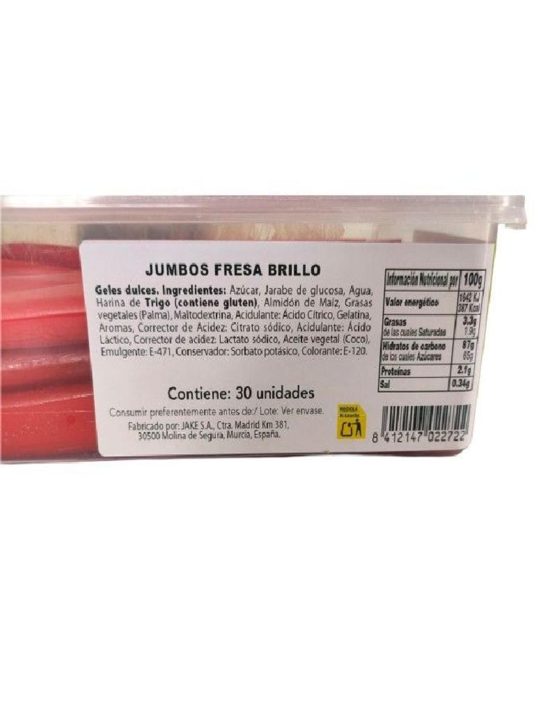 Azúcar, jarabe de glucosa, agua, harina de trigo (contiene gluten), almidón de maíz, grasas vegetales (palma), maltodextrina, acidulante: ácido cítrico, gelatina, aromas, corrector de acidez: citrato sódico, acidulante: ácido láctico, corrector de acidez: lactato sódico, aceite vegetal (coco), emulgente: E471, conservador: sorbato potásico, colorantes: E120.
