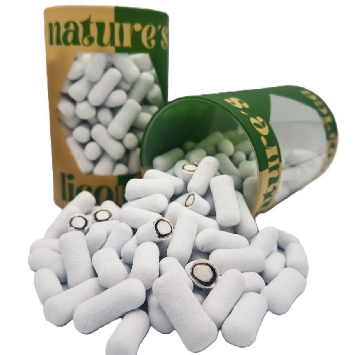 Azúcar, Sirope, Harina de trigo, Melazas, Fécula de Maíz, Extracto de Regaliz, Jarabe de Glucosa, Espesante (E414), Colorante (E-171), Sabores (Aceite de Menta, Aceite de Anis).